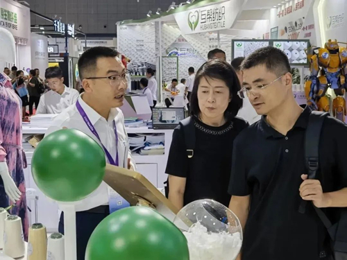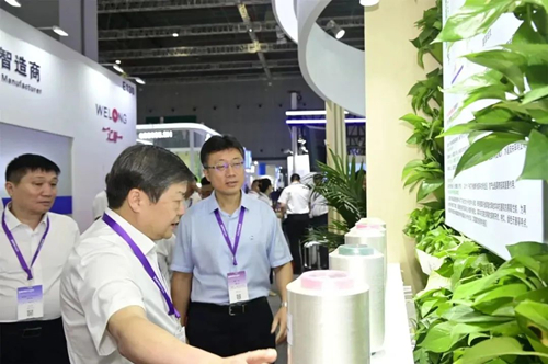 通用技術(shù)集團(tuán)副總經(jīng)理、黨組成員賈大風(fēng)現(xiàn)場實(shí)地調(diào)研考察通用技術(shù)新材展團(tuán),詳細(xì)了解纖維新材料、化纖裝備制造與工程服務(wù)、紡織新材料、標(biāo)準(zhǔn)檢測與技術(shù)服務(wù)等業(yè)務(wù)板塊參展情況,并對此次展示的綠纖、特纖、高纖產(chǎn)品及制品的技術(shù)創(chuàng)新點(diǎn)和經(jīng)濟(jì)效益及社會(huì)效益情況進(jìn)行了深入溝通。
