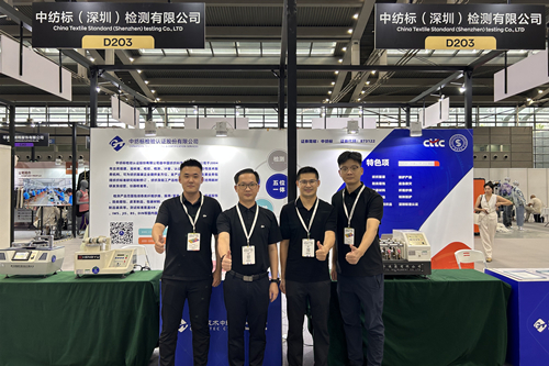 本次展會(huì)深圳中紡標(biāo)攜手深圳標(biāo)準(zhǔn)認(rèn)證聯(lián)盟共同參展。在展位上圍繞“標(biāo)準(zhǔn)引領(lǐng)服裝高質(zhì)量發(fā)展”主題,給眾多到來的客戶講解了深圳標(biāo)準(zhǔn)認(rèn)證政策,以及推介優(yōu)質(zhì)的檢測(cè)認(rèn)證服務(wù),向客戶傳遞高標(biāo)準(zhǔn)引領(lǐng)、高質(zhì)量發(fā)展的理念,同時(shí)針對(duì)校服及定制服的主要風(fēng)險(xiǎn)項(xiàng)目進(jìn)行現(xiàn)場測(cè)試展示,讓客戶更加直觀了解到其測(cè)試原理和過程。