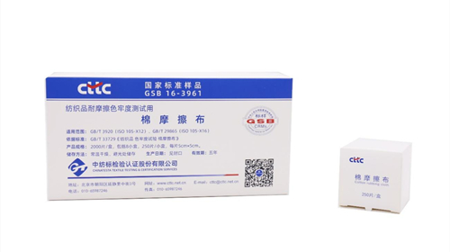 T/CNTAC RM 1-2019 《紡織品耐摩擦色牢度測(cè)試用棉摩擦布標(biāo)準(zhǔn)用品》( GSB 16-3631-2022)依據(jù)GB/T 33729-2017(ISO 105-F09:2009,MOD)《紡織品 色牢度試驗(yàn) 棉摩擦布》研制,適用于GB/T 3920(ISO 105-X12:2001,MOD)《紡織品 色牢度試驗(yàn) 耐摩擦色牢度》和GB/T 29865(ISO 105-X16:2001,MOD)《紡織品 色牢度試驗(yàn) 耐摩擦色牢度 小面積法》,試驗(yàn)時(shí)安裝在耐摩擦色牢度試驗(yàn)儀的摩擦頭上作為摩擦布對(duì)試樣進(jìn)行干、濕摩擦試驗(yàn)。