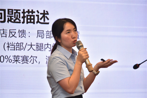 李寅在《印花產(chǎn)品質(zhì)量管控經(jīng)驗(yàn)分享》的報(bào)告中,結(jié)合實(shí)際案例詳細(xì)分析了印花產(chǎn)品中常見(jiàn)的印花變色、黃變、起翹脫層、開(kāi)裂等質(zhì)量問(wèn)題與管控方法,同時(shí)分享了印花耐濕熱色牢度檢測(cè)方法標(biāo)準(zhǔn)的相關(guān)研究,通過(guò)介紹相關(guān)顏色變化的原因、提出解決問(wèn)題的辦法,結(jié)合實(shí)際退殘率數(shù)據(jù)的下降說(shuō)明質(zhì)量管控方法的有效性。
