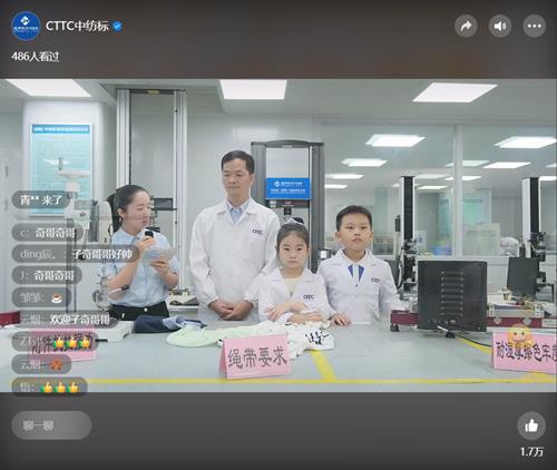 中紡標(biāo)公司實(shí)驗(yàn)室的專家叔叔,在演示并講解了相關(guān)實(shí)驗(yàn)項(xiàng)目后,還在直播間為家長(zhǎng)們選購(gòu)嬰童服飾給出了專業(yè)建議。