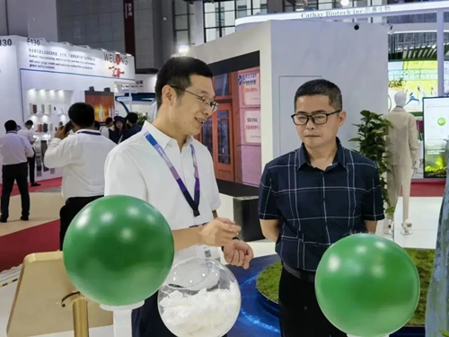 通用技術(shù)集團(tuán)副總經(jīng)理、黨組成員賈大風(fēng)現(xiàn)場實(shí)地調(diào)研考察通用技術(shù)新材展團(tuán),詳細(xì)了解纖維新材料、化纖裝備制造與工程服務(wù)、紡織新材料、標(biāo)準(zhǔn)檢測與技術(shù)服務(wù)等業(yè)務(wù)板塊參展情況,并對此次展示的綠纖、特纖、高纖產(chǎn)品及制品的技術(shù)創(chuàng)新點(diǎn)和經(jīng)濟(jì)效益及社會(huì)效益情況進(jìn)行了深入溝通。