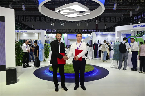通用技術(shù)新材展團(tuán)現(xiàn)場國內(nèi)外客商絡(luò)繹不絕,綠纖、特纖等相關(guān)產(chǎn)品尤其受到關(guān)注,通用技術(shù)新材展團(tuán)與幾十家客戶達(dá)成了合作意向。中紡綠纖與巴基斯坦公司SARA TRADE INTERNATIONAL 簽訂了戰(zhàn)略合作協(xié)議。