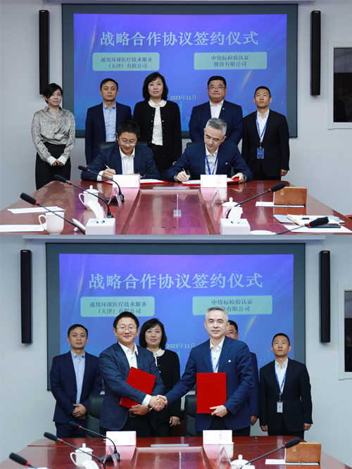11月22日,通用技術(shù)中紡標(biāo)檢驗認(rèn)證股份有限公司(以下簡稱“中紡標(biāo)”)與通用環(huán)球醫(yī)療技術(shù)服務(wù)(天津)有限公司(以下簡稱“環(huán)球技服”)就醫(yī)療市場計量業(yè)務(wù)成功簽署戰(zhàn)略合作協(xié)議。中紡標(biāo)總經(jīng)理李斌、環(huán)球技服總經(jīng)理黃重陽代表雙方簽署合作協(xié)議,通用環(huán)球醫(yī)療集團有限公司總經(jīng)理助理王芳、通用技術(shù)高新材料集團有限公司市場協(xié)同部總經(jīng)理單世寶等出席儀式并見證簽約。