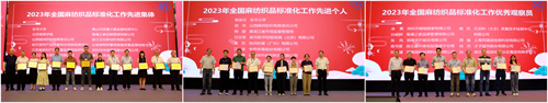 會議表彰了2023年度全國麻紡織品標準化技術(shù)委員會標準化工作的先進單位和個人,同時為新增補的觀察員頒發(fā)了證書。